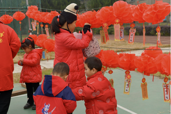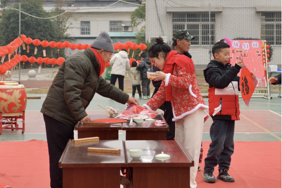 “逛庙会了!”随着主持人的一声吆喝,一个个热闹的小摊张罗开来,汤圆、饺子、糖葫芦、麻辣烫、油炸果、擂茶、棉花糖……具有鲜明地方特色的小吃纷纷呈现,大朋友和小朋友穿梭在各个美食摊位前,吃美食积“福”字,不少学生看到美食的制作过程后忍不住自己动手,包起了饺子,搓起了汤圆……感受着传统美食的魅力。大小朋友们吃完美食后,还有猜灯谜、套圈圈、送福字、幸运大抽奖等互动环节,让师生及家长们在游戏中增进感情,共同体验新年的快乐。