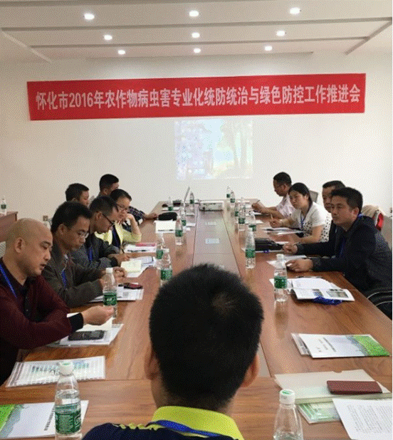 5月24日,怀化市召开2016年全市农作物病虫害专业化统防统治与绿色防控工作推进会。各县市区植保站长及部分专业化服务组织、绿色防控企业代表参加会议。