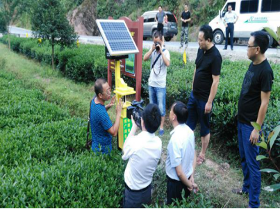该园47盏风吸式太阳能诱虫灯在8月10日安装结束并投入使用。县植保植检站谢绍兴介绍,近年来,沅陵县积极推广茶叶病虫绿色防控技术,按照“乡有示范园,村有示范片”的目标,在筲箕湾、马底驿、官庄、北溶等乡镇建示范园(片)8处1500余亩,辐射周边茶园10万余亩。茶园通过运用“杀虫灯+黄板+生物农药”、“杀虫灯+黄板+诱芯”及生态调控技术等技术集成模式对茶园害虫进行有效防控。