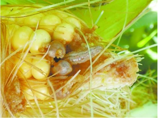 玉米螟俗称钻心虫、钻茎虫、挖心虫等,以老熟幼虫在寄主茎秆、穗轴和根茬内越冬,翌年春天化蛹,成虫飞翔力强,具有趋光性。在玉米心叶期,玉米螟初孵幼虫大多爬入心叶内,群聚取食心叶叶肉,留下白色薄膜状表皮,呈花叶状;二、三龄幼虫在心叶内潜藏为害,心叶展开后,出现整齐的排孔;四龄后陆续蛀入茎秆中继续为害。蛀孔口常堆有大量粪屑,茎秆遇风易从蛀孔处折断。由于茎秆组织遭受破坏,影响养分输送,玉米易早衰,严重时雌穗发育不良,籽粒不饱满。近年来,玉米螟的发生呈逐年递增的趋势,但由于玉米螟的低龄幼虫潜藏在心叶内为害,四龄后陆续蛀入茎秆中继续为害。这种为害习性不利于药剂的施用,增加了防治难度。