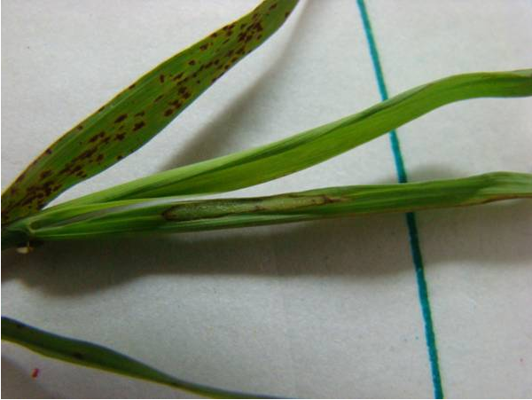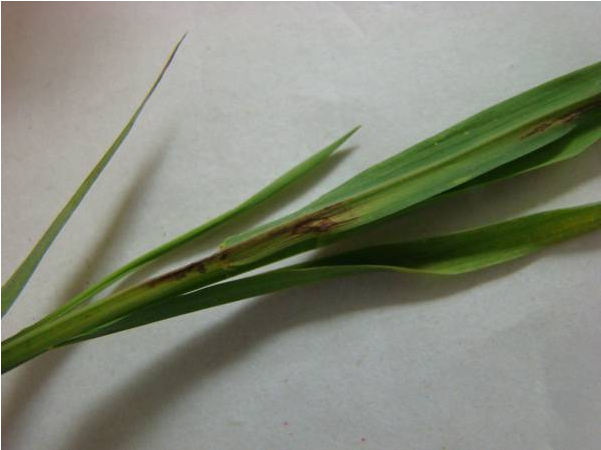 该病发生快,传染也快,已有两户农户的秧苗发生该病,对秧苗损失大。主要为害叶片、叶鞘、,叶片染病初为褐色水浸状小斑,后扩大为纺缍形或不规则赤褐色条斑,边缘出现黄晕,病斑中心灰褐色,病斑常融合成大条斑,使叶片局部坏死,没有菌脓,叶片中脉有褐色坏死。该病从植株伤口侵入寄主,也可从水孔、气孔侵入,在水中可存活20-30天,随水流传播。暴雨、台风可加重病害发生。
