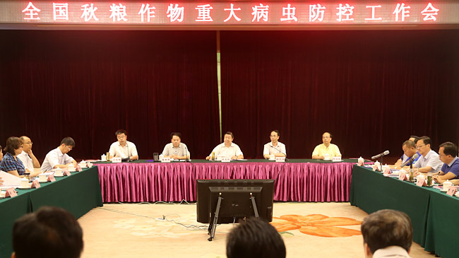 本网讯 8月9日,农业部在湖南长沙召开秋粮作物重大病虫防控工作会,对病虫监测预警、统防统治、绿色防控和农药减量控害工作进行了再部署、再落实。会议强调,今年秋粮重大病虫防控工作任务艰巨,要切实做好各项监测防控工作,确保重大病虫不大面积暴发成灾,总体危害损失控制在5%以内,力争全国秋粮作物病虫害专业化统防统治率达到35%。