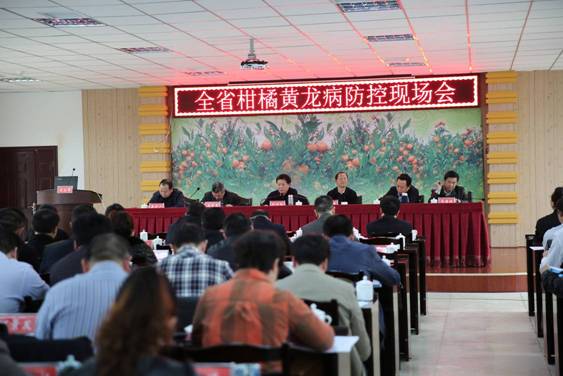 会议观摩了江永县柑橘黄龙病防控现场,江永县委书记冯德校、道县副县长胡斌清分别介绍了本县柑桔黄龙病防控工作,省农业委员会党组书记、主任刘宗林就全省柑桔黄龙病防控工作进行了部署,中国农科院柑橘研究所所长、西南大学副校长、中国柑橘学会理事长周常勇研究员作了专题学术报告。