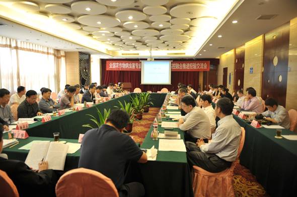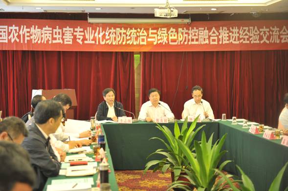 下午,与会代表在室内开展了工作经验交流。湖南、山西、浙江、广西、湖北等5省区植保植检负责人及湖南、江西、四川的专业化服务组织代表进行了工作交流。陈友权副巡视员对全国专业化统防统治与绿色防控融合推进工作的成绩进行总结和肯定,并强调下阶段要搞好四个结合。即:政府扶持和市场运作相结合;生产主体与专业化服务组织相结合;产品研发和技术集成相结合;示范展示与推广应用相结合。加大扶持力度,加大技术集成,加强主体培育,加强示范试验,努力推进病虫害专业化统防统治与绿色防控融合推进工作取得新成效,确保2016年示范工作有突破性进展,2020年全国融合推进应用面积比率达到30%以上。