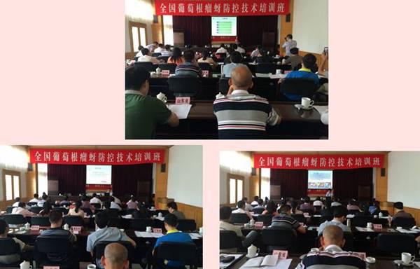 下午,会议代表在怀化市迎宾馆参加了培训。中国农科院植保所王忠跃教授、湖南农业大学肖铁光教授、南京农业大学郎志飞教授报告了各自在葡萄根瘤蚜防控研究领域所取得的最新研究成果,湖南、上海、贵州、陕西四省(市)介绍了各自葡萄根瘤蚜防控工作经验,最后,全国农业技术推广服务中心钟天润副主任作了会议总结。钟天润副主任充分肯定了全国葡萄根瘤蚜防控工作所取得的成效,要求各地要清醒认识葡萄根瘤蚜防控所面临的形势,加强疫情监测,抓好苗木监管,做好宣传培训,深化防控实验研究,减少葡萄根瘤蚜的危害,防治疫情扩散蔓延。