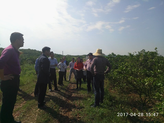 4月26-29日,由省植保站杨孚初站长任组长,湖南农大柑橘专家邓子牛教授、省农委经作处丁伟平副处长、省植保站雷振东科长任成员的省农委柑橘黄龙病防控工作督察组莅临郴州市督察指导,市农委李绍萍总农艺师及植保植检科、经作科的同志陪同督察。