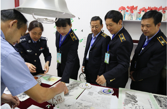 黎托强戒所刘志宏副调研员向考察学习团成员介绍被强制戒毒人员的精美作品