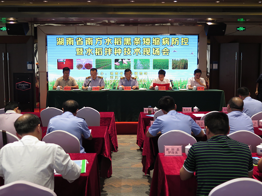 上午,与会代表到浏阳市北盛镇冒雨参观了水稻拌种剂展示示范、浏阳市“南黑”综合防控示范区和水稻机械拌种技术演示3个现场。下午为室内会议,浏阳市市委常委、副市长邓凡出席会议并致欢迎辞,浏阳市介绍了全市“南黑”防控工作经验,其在部门统筹协作、集中重点培训、农企联合扩面、强化技术示范、综合全面防控等方面的成功经验值得全省推广借鉴。