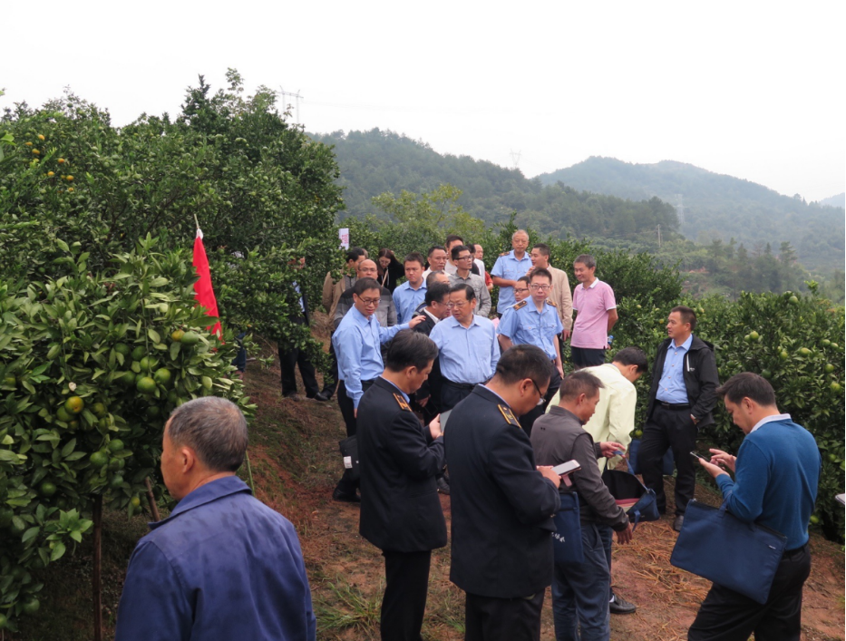 全体与会人员观摩了慈利县园艺场柑橘砂皮病防控示范现场,详细了解了试验示范区基本情况、防控措施、查看了防控效果。