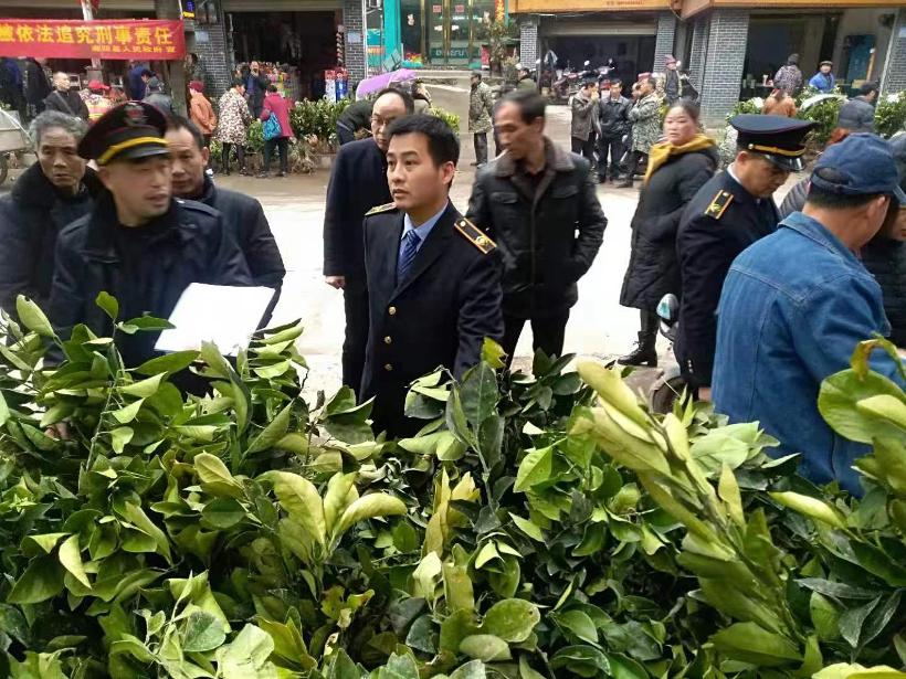 启动仪式当天,市县植物检疫执法人员38人分两组对麻阳县高村镇集市柑橘种苗开展植物检疫联合执法检查,并在集市中心位置设立了植物检疫宣传咨询台,重点向群众宣传非法调运苗木的危害及栽植柑橘黄龙病苗木的严重恶果。在市场检查中,执法人员现场查扣外来无证柑橘苗木共计650株,并依法下达了法律文书。