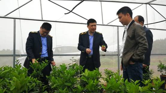 在零陵等5个县区调研柑橘黄龙病综合防控工作时,谭小平重点察看了各地柑橘健康容器大苗繁育大棚、柑橘黄龙病综合防控示范区建设情况,对永州市近年来在柑橘黄龙病防控工作等方面所取得的成绩给予肯定,同时也指出了存在的主要问题。他强调:一是柑橘黄龙病综合防控示范区要综合运用 “传统三板斧”和“新三板斧”措施,集成展示防控技术,确保综合防控成效。二是各地要因地制宜突出关键措施,如新区和新建果园要突出果园生态隔离和保证种植苗木安全;中轻度发生区要突出柑橘健康容器大苗补种,推动病树清除;柑橘木虱发生区要突出统防统治,保证防控效果。三是柑橘健康容器大苗繁育大棚建设标准要规范,标准棚与简易棚并举;建设主体为柑橘种植大户或合作社,农业部门不能包办;建设扶持要采取先建后补,逐步到位。四是坚持问题导向,补齐工作短板,如部分地方仍存在柑橘露天育苗;健康容器大苗繁育大棚建设进度偏慢、不规范;病树消除不彻底等问题。