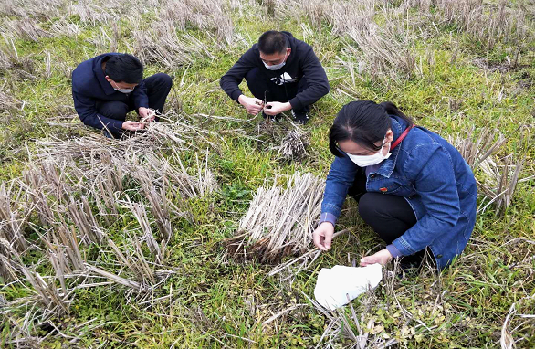 图10:2月27日永兴县开展二化螟越冬基数和油菜菌核病调查