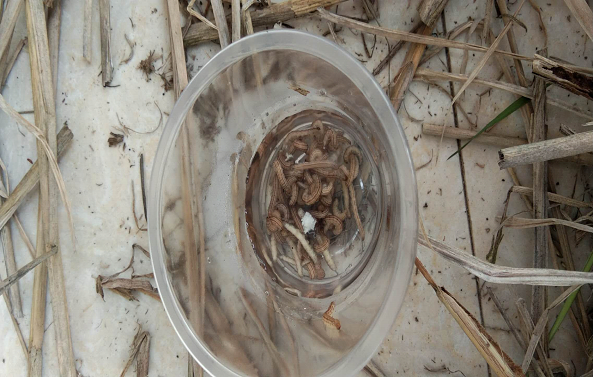 图12:2月25日安仁县植保人员剥的水稻二化螟越冬活幼虫