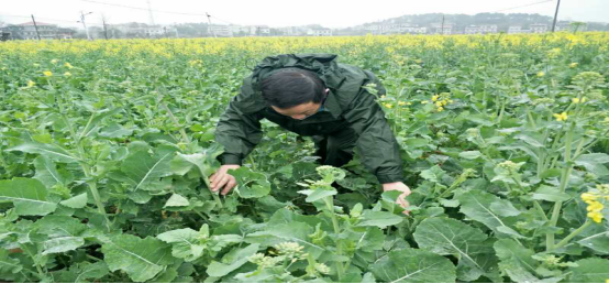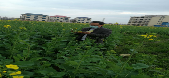▲图为新化县植保人员开展油菜菌核病、霜霉病调查