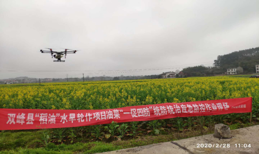 开春以来,气温持续偏高,降水较往年偏多,有利于油菜病害流行,全市植保植检部门深入田间地头进行油菜病虫害监测调查,发布病虫害防治通知单,指导群众快速恢复春耕生产。双峰县、涟源市、新化县分别组织大新农资统防统治合作社、湖南精飞智能专业化统防统治服务部、天华病虫害航空防治专业合作社在油菜基地开展“一促四防”(促生长发育、防菌核病、防花而不实、防早衰、防高温逼熟)植保无人机精准防控,助力全市春季农业生产有序推进,为今年全市粮食增产、农业增效、农民增收打下坚实基础。