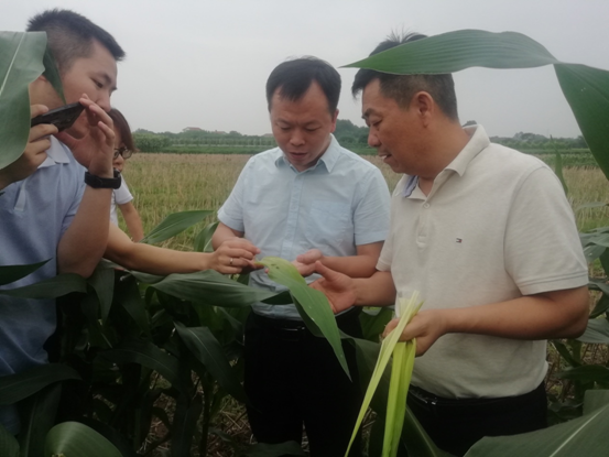 6月10日至11日,省植保植检站站长李毅来常德市调研植保工作。在鼎城区水稻病虫绿色防控与统防统治融合推进项目核心示范区,他实地查看了早稻病虫害发生情况以及绿色防控措施应用情况,询问了解性诱、灯诱等绿色防控技术的成效以及早稻病虫害的防治效果,又赶往桃源县陬市镇草地贪夜防控示范片调查草地贪夜蛾幼虫发育进度和成虫诱捕情况,同时了解了桃源县智慧农业云自动虫情观测系统当日二化螟、稻纵卷叶螟、稻飞虱的实时监测情况。