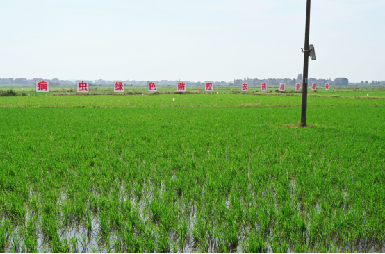 与会代表参观了岳阳县筻口镇释迦寺村水稻绿色防控核心示范区,示范区全面应用翻耕深水灭蛹、二化螟性诱、太阳能杀虫灯、人工释放赤眼蜂、田埂种豆、药剂拌种等绿色防控技术,晚稻郁郁葱葱,长势喜人。据调查统计,示范区全年减少施药次数1.5次,化学农药使用量减少20%以上,生物多样性提高26.3%。