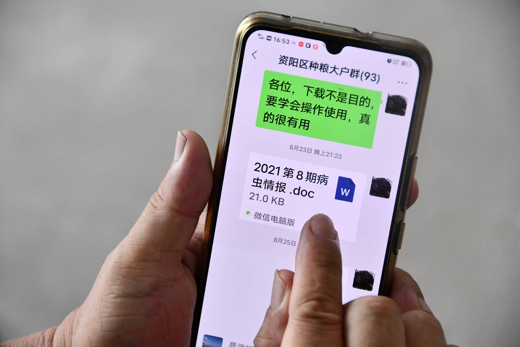 9月1日,益阳市资阳区农业农村局植保站站长张益夫展示发给种粮大户的病虫情况报告