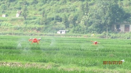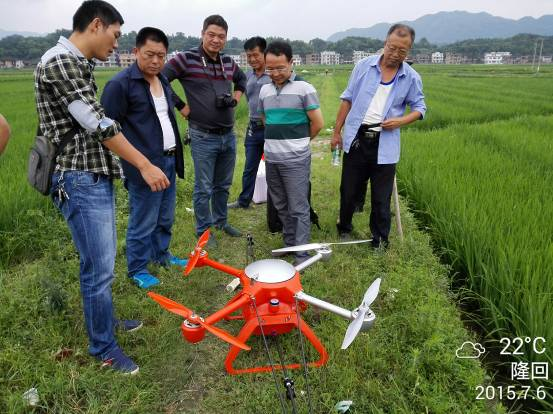 7月6-8日,隆回县专业化统防统治服务组织--隆回县山峰农业发展有限公司引进3架植保无人机开展飞防作业,全县植保科技应用又有了新的突破。县农业局局长吴厚宾、县农业技术推广中心主任刘祝龙、植保站、部分专防组织负责人和种粮大户到高平镇飞防现场进行了观摩。据了解,引进的该型号植保无人机载荷6升,喷幅6米,一个起落架次7分钟,作业面积8-10亩,日作业能力300亩以上,且其回旋翼带来的下沉气流可使药液均匀喷洒至水稻的上中下部,具有作业效率高、操作简单、省水省工省药的优点,当地农户纷纷称赞。