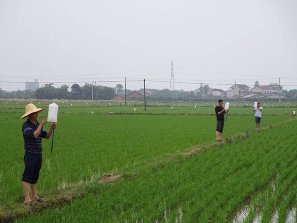 衡南县三塘镇大广村二化螟性信息素诱杀二化螟现场