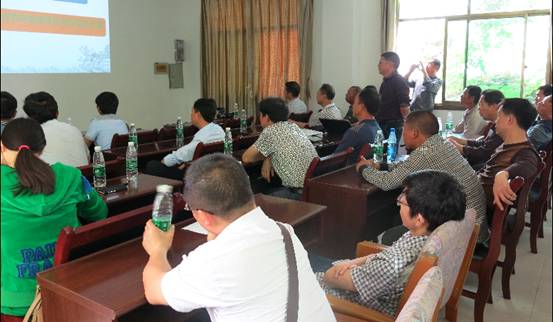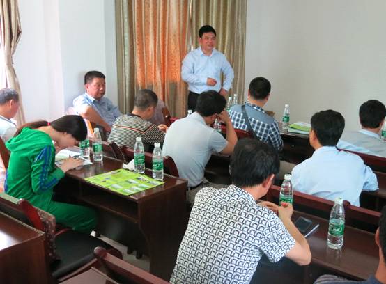 会议由衡阳市植保站站长黄珍龙主持。现场观摩新器械喷施演示后,参会人员在会议室进行了专业化统防统治的方法,新器械使用等技术的培训。会上,衡阳市植保站站长黄珍龙就全市今年的专业化统防统治工作、植保部门与大地飞歌农业发展有限公司对接及服务、管理、风险防范作了讲话。大地飞歌农业发展有限公司董事长易三乃介绍了公司在7县市开展专业化统防统治运着落实情况介绍。市农业局副局长罗金华指出,为了确保全市粮食生产安全、农产品质量安全和农业生态环境安全,需要不断提高植保抗灾减灾能力和水平,引导农作物病虫害专业化统防统治的健康发展。2015年全市计划种植早稻372万亩,中、晚稻415万亩,病虫总体将偏重发生,全市应从以下几点着力:1、强化省市各项资金投入,提升发展能力;2、强化宣传培训,实行整村推进;3、积极培育引导发展,规范管理强化社会化服务;4、深入开展办点示范,大力推广绿色防控技术,统防统治要与绿色防控融合实施,并重发展;5、积极引进和推广先进器械, 提高统防统治装备与水平。