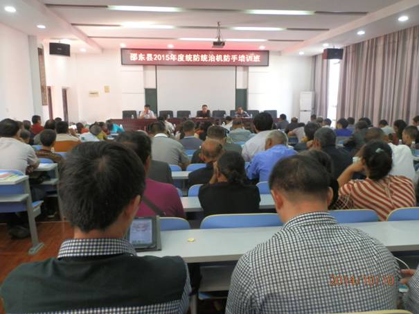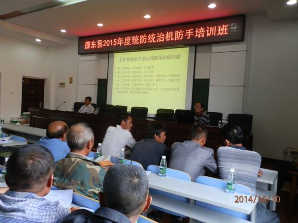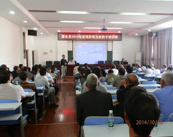 10月10日,邵东县“ 2015年度统防统治机防手培训班”在县委党校开班。培训将持续4天,第1天集中理论学习,第2天在灵官殿和仙槎桥现场授课,第3、4天进行机械操作和维修实践,县内6个服务组织负责人和110多名机防手参加培训。市植保植检站长吕小云、县植保植检站长吴社高就专业化统防统治的意义、机防手职责和农药安全使用技术等进行授课培训,县农业局贺益红局长出席并讲话。本次培训将进一步充实和丰富机防手的病虫防治知识,提高其机械操作能力,有力促进2015年农作物病虫害专业化统防统治发展。