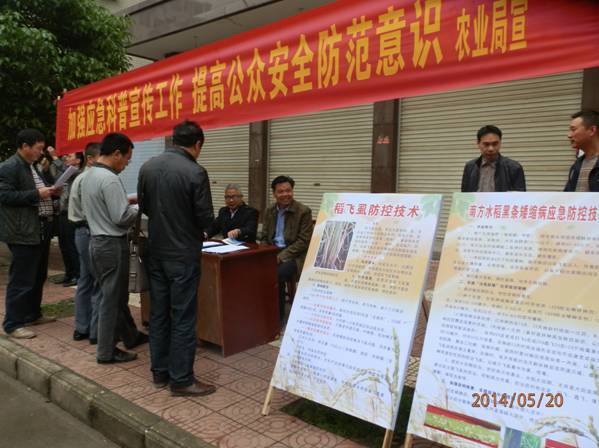 5月以来,邵东县稻飞虱(特别是白背飞虱)数量激增,以白背飞虱为传播媒介的南方水稻黑条矮缩病有潜在流行成灾的危险。为了使农民能够正确认识二者的危害和关系,指导农民及时采取“治虱防矮”等措施开展应急防治。5月20日,邵东县植保植检站结合农业局的应急防控科普宣传,组织技术人员座诊,临街进行技术咨询和专业化统防统治宣传,全天发放技术资料550多份,诊断农作物病虫害和解答农民技术咨询18次。