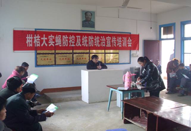 今年,澧县植保植检站“三路出击”助推柑桔大实蝇统防统治。一是加大宣传力度。利用广播、电视、会议、印发资料等形式向桔农宣传柑桔大实蝇防控的重要性、紧迫性及统防统治的好处、措施等。特别在柑桔主产区(涔北丘岗一带)召开了以村为单位的桔农培训会;二是科学制定方案。根据实际情况,3月初制定了《澧县2014年柑桔大实蝇统防统治工作方案》,明确工作目标,落实工作责任,指定服务组织;三是强化资金投入。今年,县政府投入专项经费70万元,用以支持统防统治农户的防治药剂补贴。目前柑桔大实蝇统防统治各项工作正在有条不紊的进行中,已签订服务合同并下发药剂面积1万亩。