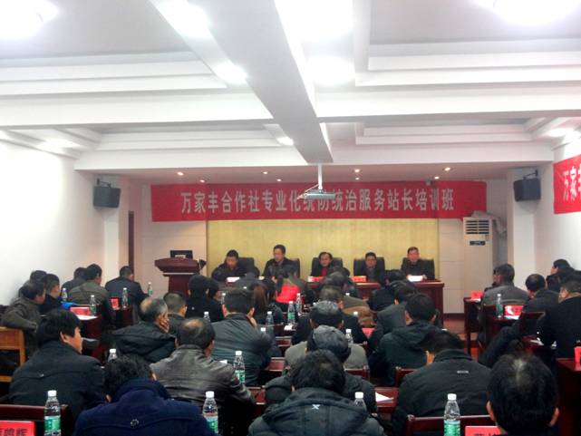 2月24日,沅江市万家丰现代农业服务有限公司(原万家丰合作社)隆重举行2014年水稻病虫害专业化统防统治与绿色防控融合推进动员大会暨服务站长培训班。108名服务站长和技术人员到会并参加培训,省植保植检站唐会联副站长、尹惠平科长、益阳市植保植检站曹志平站长、苏彪副站长、沅江市植保植检站胡建辉站长一同出席。会议由沅江市农业局易杰亮副局长主持并作动员报告,曹志平站长作了讲话,唐会联副站长以“追求动力最大化,实现阻力最小化是达成小老板的秘诀”为题,就服务站长在专业化统防统治与绿色防控融合推进工作中如何发挥作用作了2个多小时的生动深刻讲课。下午,胡建辉站长就水稻病虫草害绿色防控、水稻高产栽培等作了技术讲座,黄安辉董事长对2013年的工作进行了回顾总结和问题剖析,对2014年工作重点和目标任务进行了详细说明和部署,最后,黄安辉董事长介绍了去年30个村级服务站取样的稻谷农残指标检测情况,专业化统防统治服务区镉、铅重金属含量远低于国家限量标准,并发放了宣传彩页。整体会风严谨,讨论热烈,情绪高涨,大家对未来充满信心。