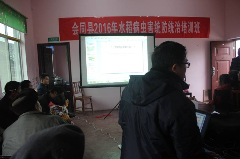 1月11日,会同县植保植检站站联合会同怀新科农作物病虫害合作社、湖南金骏农业科技有限公司,在坪村镇高村村开展会同县2016年农作物病虫害专业化统防统治第一期培训班。