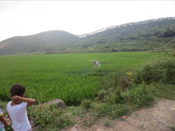 为破解农作物病虫害防治工作这个长期制约农业生产发展的难题,新田县植保站大力协助农丰、春辉、永盛、昌农、茂顺、惠联等农业合作社开展专业化统防统治工作的基础上,经与永州市绿地有害生物防控有限责任公司协商,引入遥控无人直升机配合各合作社开展“飞防”,更好地推进新田县病虫害专业化统防统治工作。8月10日,新田县昌农合作社在陶岭乡东山岭、楼下、门背下村等地6800亩晚稻上开展了第一次病虫害专业化统防统治“飞防”作业。
