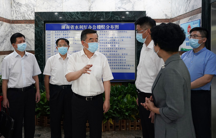 来到省水旱灾害防御中心,张庆伟通过防旱抗旱系统了解全省旱情灾情,并分别视频连线洞庭湖北部地区分片补水工程岳阳片区、欧阳海灌区工程现场,了解建设运营、补水用水等情况。