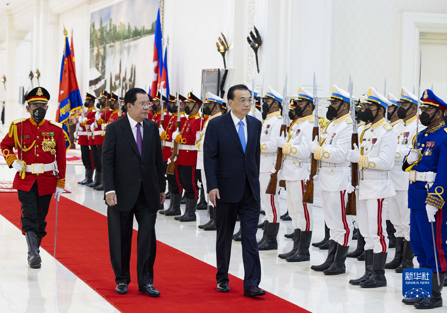 李克强表示,中柬传统友谊深厚,拥有高度政治互信,各领域务实合作成果丰硕。习近平主席2016年成功访问柬埔寨,2020年为莫尼列太后颁授“友谊勋章”,为两国友好再续新的篇章。首相先生是新冠肺炎疫情突发之际首位访华的外国领导人,给中国人民留下深刻印象。疫情发生近三年来,我首次出访即到金边出席东亚合作领导人系列会议并正式访问柬埔寨,感到非常高兴。中方祝贺柬经济社会取得新的发展。中方一向主张大小国家一律平等,各国都遵守联合国宪章宗旨原则,支持柬方走符合本国国情的发展道路,支持柬在国际和地区舞台发挥更加重要的作用,愿同柬方密切高层交往与沟通,在涉及彼此核心利益和重大关切问题上相互支持,推动中柬全面战略合作伙伴关系持续健康发展,更好造福两国人民。
