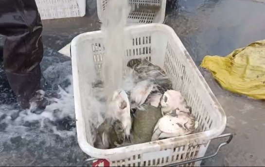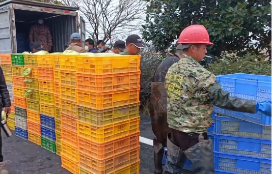 2022年12月29日,正值隆冬时节,天刚蒙蒙亮,乐兴分场10队的种养户高桂娥、高喜保兄弟和身穿水裤的专业捕捞队伍就已经开始下田收获甲鱼了。在高氏兄弟的稻田里人声鼎沸,一派热火朝天的繁忙景象。公路上清洗、分类、打包、过称、上车的人员一字排开,分工协作、有条不紊的忙碌着……
