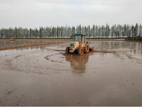 江南四月春意正浓,正值春耕生产的关键时期,在大洲分场千亩紫云英示范基地,轰隆隆的旋耕机来回穿梭,大片大片紫云英被翻压入泥,作为水稻种植的底肥。