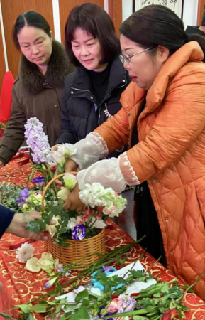 活动由经验丰富的花艺师现场教授。他从插花艺术的基础知识、工具使用、插花造型、色彩搭配、定位包装等方面进行了一一演示。女教职工们边看边学,于花香四溢中感受美、创造美,将手中的一朵朵鲜花变成了美丽动人的插花作品。她们捧着自己亲手制作的作品,脸上洋溢着满满的成就感。