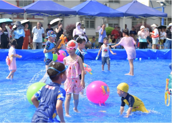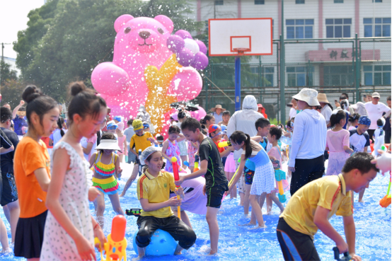 活动当天,学生们身着泳衣,手持水枪,互相追逐,尽情地在水池中嬉戏玩耍,欢笑声、尖叫声和呐喊声此起彼伏,操场上顿时沸腾起来,变成了一片欢乐的海洋。此外,学校还邀请了家长们参与此次活动,让他们与孩子一起享受这份清凉与欢乐。