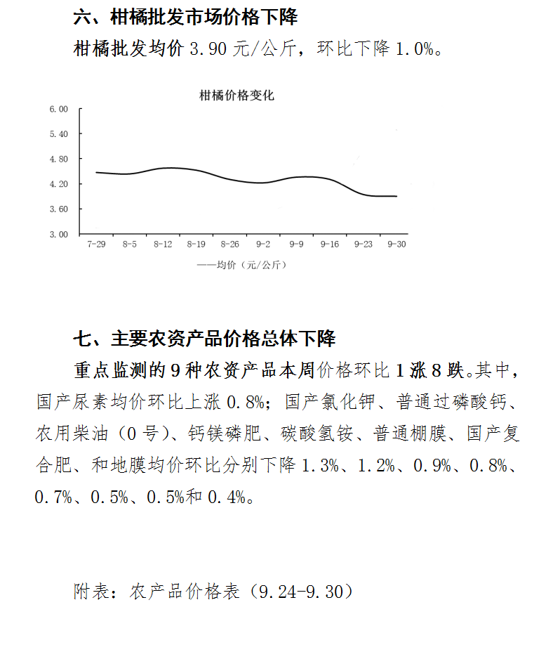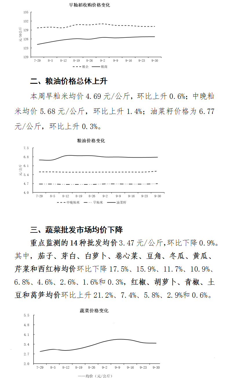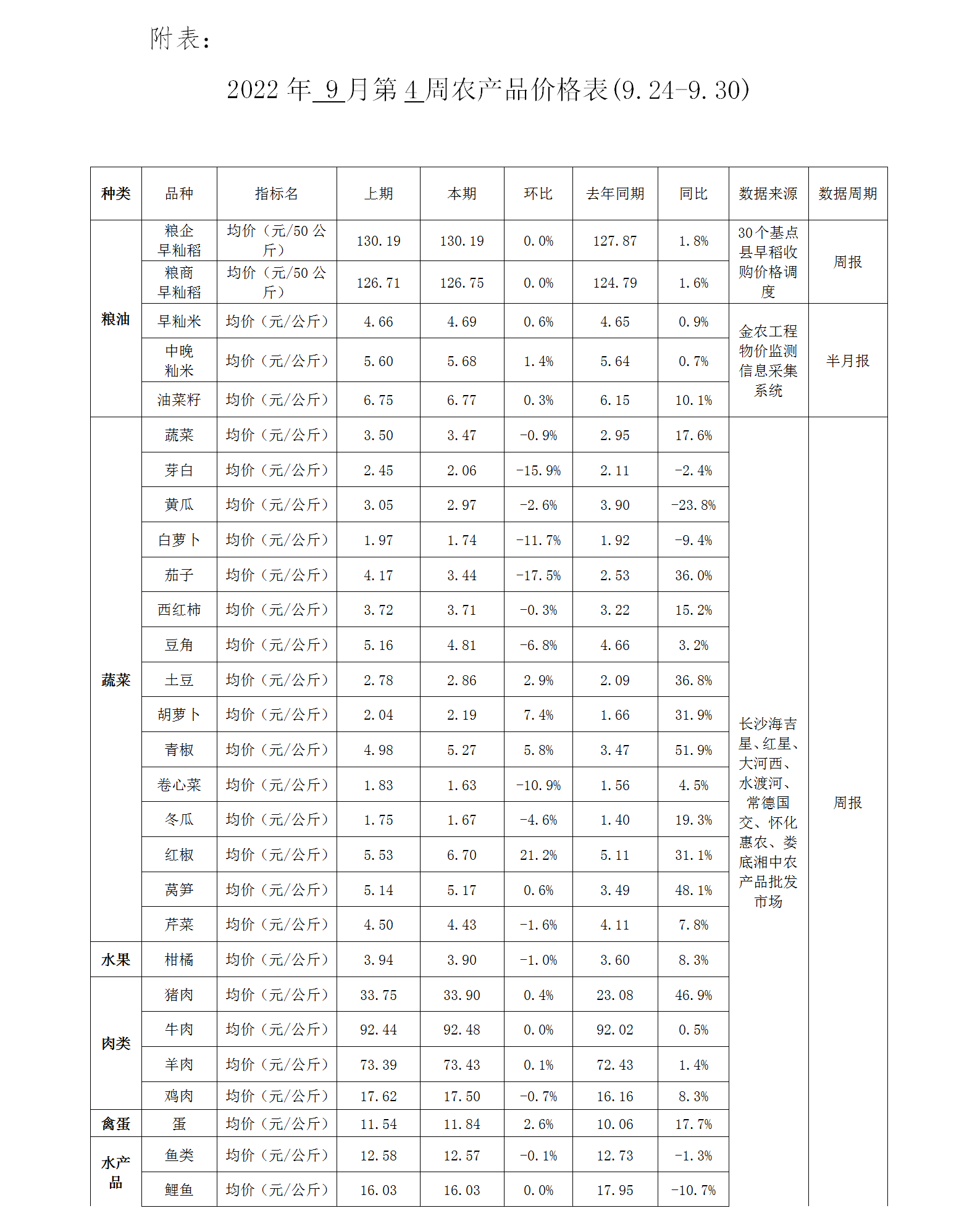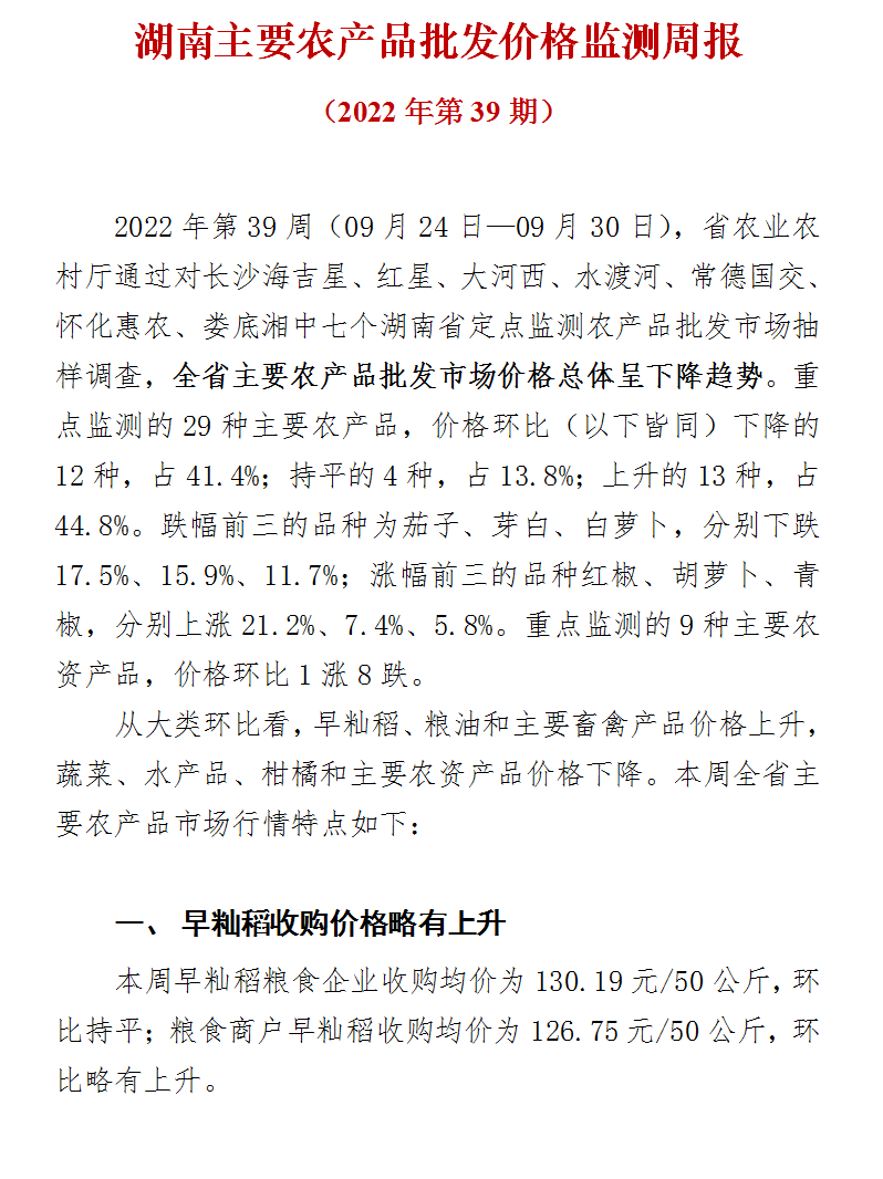 湖南主要农产品批发价格监测周报(2022年第39期)