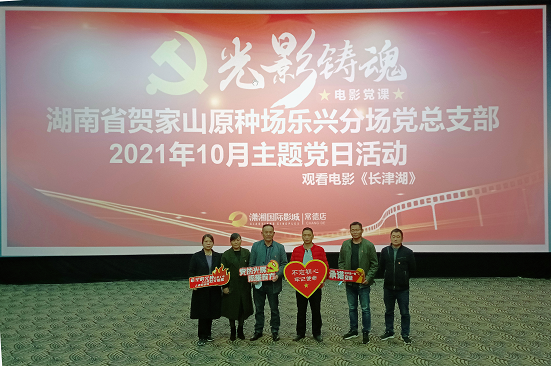 为深入推进党史学习教育,弘扬爱国主义精神,乐兴分场党总支于2021年10月19日开展主题党日活动,组织部分在职党员观看红色电影《长津湖》。