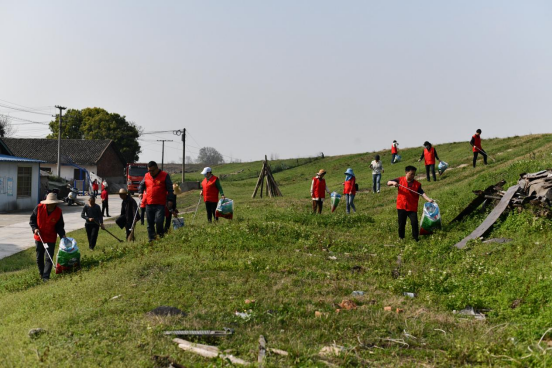 活动现场,志愿者们手持扫把、夹钳、垃圾袋,热火朝天的打扫卫生,清理绿化带内的垃圾,清除河堤沿线垃圾杂物,为和美乡村生态环境“再美颜”。