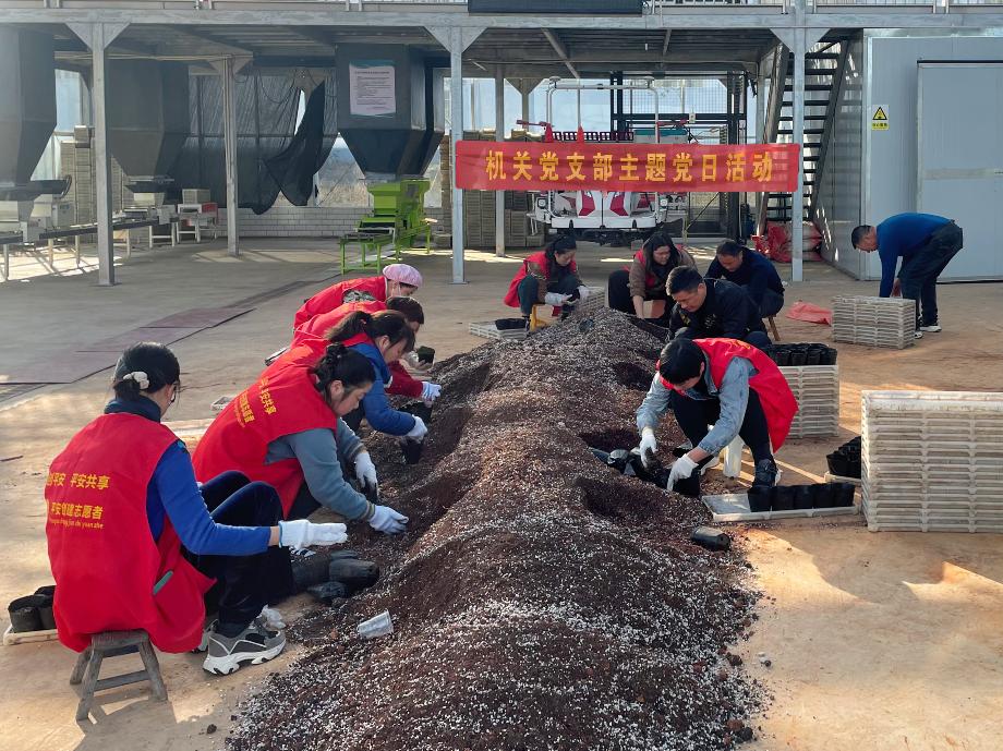 “舞动紫云英,相约贺家山”。12月4日下午,机关党支部组织党员和工作人员在我场的育秧工厂开展“我为紫云英节添光彩”的主题党日活动。在农技人员的指导下,纷纷撸起袖子,分工合作,进行紫云英播种作业,培土、装钵、撒种、搬运、摆盘,忙得不亦乐乎。3个小时共完成5000件紫云英钵的制作播种。
