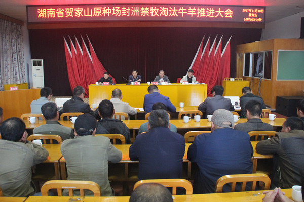 根据会议安排,场卫计办负责同志解读了《湖南省贺家山原种场2017年血吸虫病疫区封洲禁牧淘汰牛羊工作实施方案》,新合分场、乐兴分场负责同志作了表态发言。