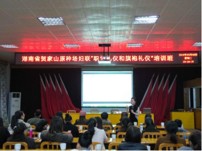 会后,特邀国家高级形象讲师、虹霖(香港)美容化妆学校校长陈虹霖女士给全体参会女同胞上了一堂关于职场礼仪和旗袍礼仪的培训课。