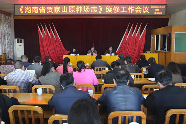 3月12日下午,我场在培训楼召开了《湖南省贺家山原种场志》续修工作会议,场属各单位、机关各科室主要负责人,场志撰写工作人员共计58人参加会议。场党委副书记、副场长邵泽毅主持会议并讲话。
