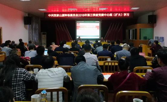 9月28日上午,我场在培训楼组织开展了第三季度党委中心组(扩大)学习,全体场党委委员、各党总支(支)部书记、委员、机关全体工作人员、场属各单位负责人、会计(报账员)、治保主任、安全生产员、国土专干、妇女主任、计生专干、民政专干共120余人参加了会议,会议由场党委副书记、副场长邵泽毅同志主持。