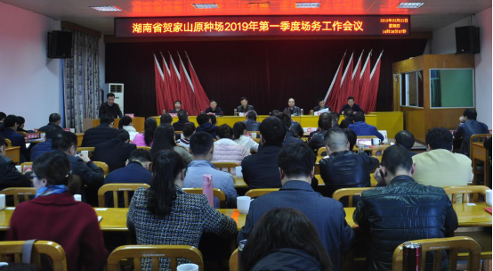 3月21日下午,我场在机关培训楼召开2019年一季度场务工作会议,全体场领导、机关全体工作人员、场属各单位负责人、兼职纪检员、治保主任、妇女主任、会计(报账员)、民政、国土、计划生育专(兼)干、安全生产员共110多人参加会议。