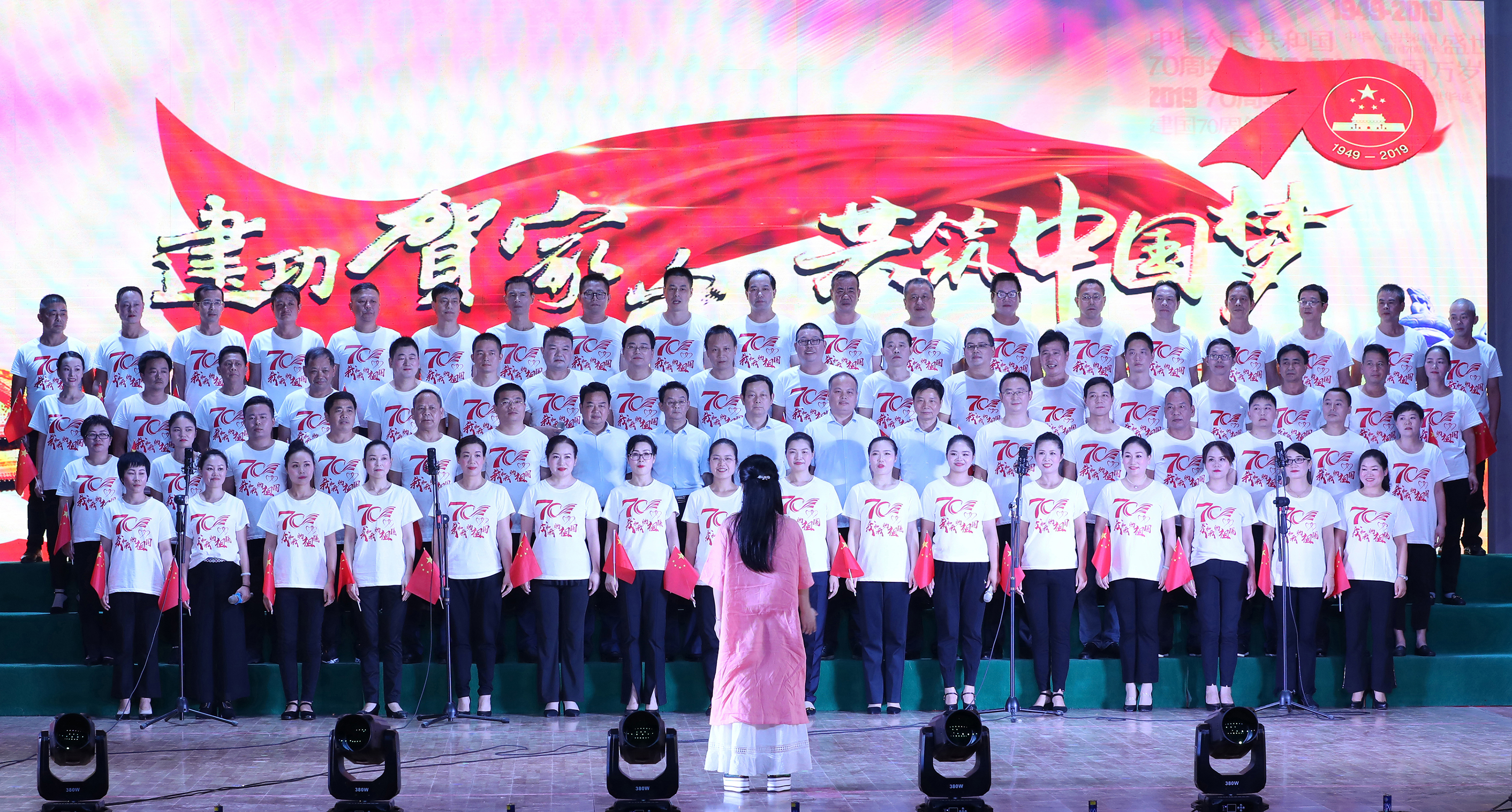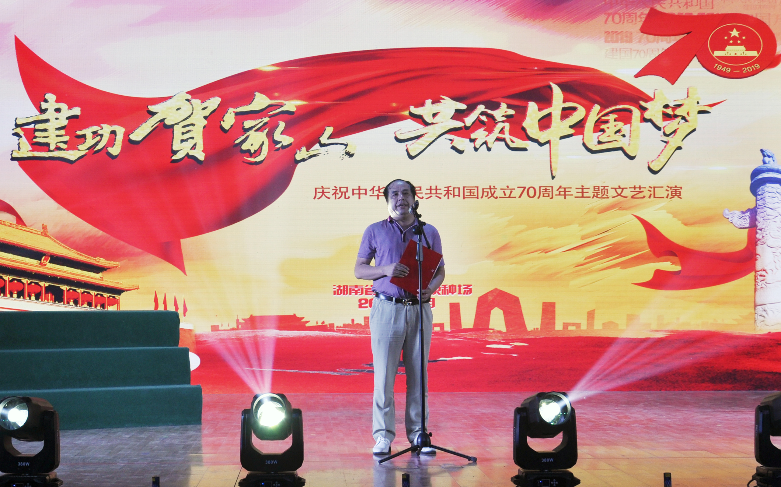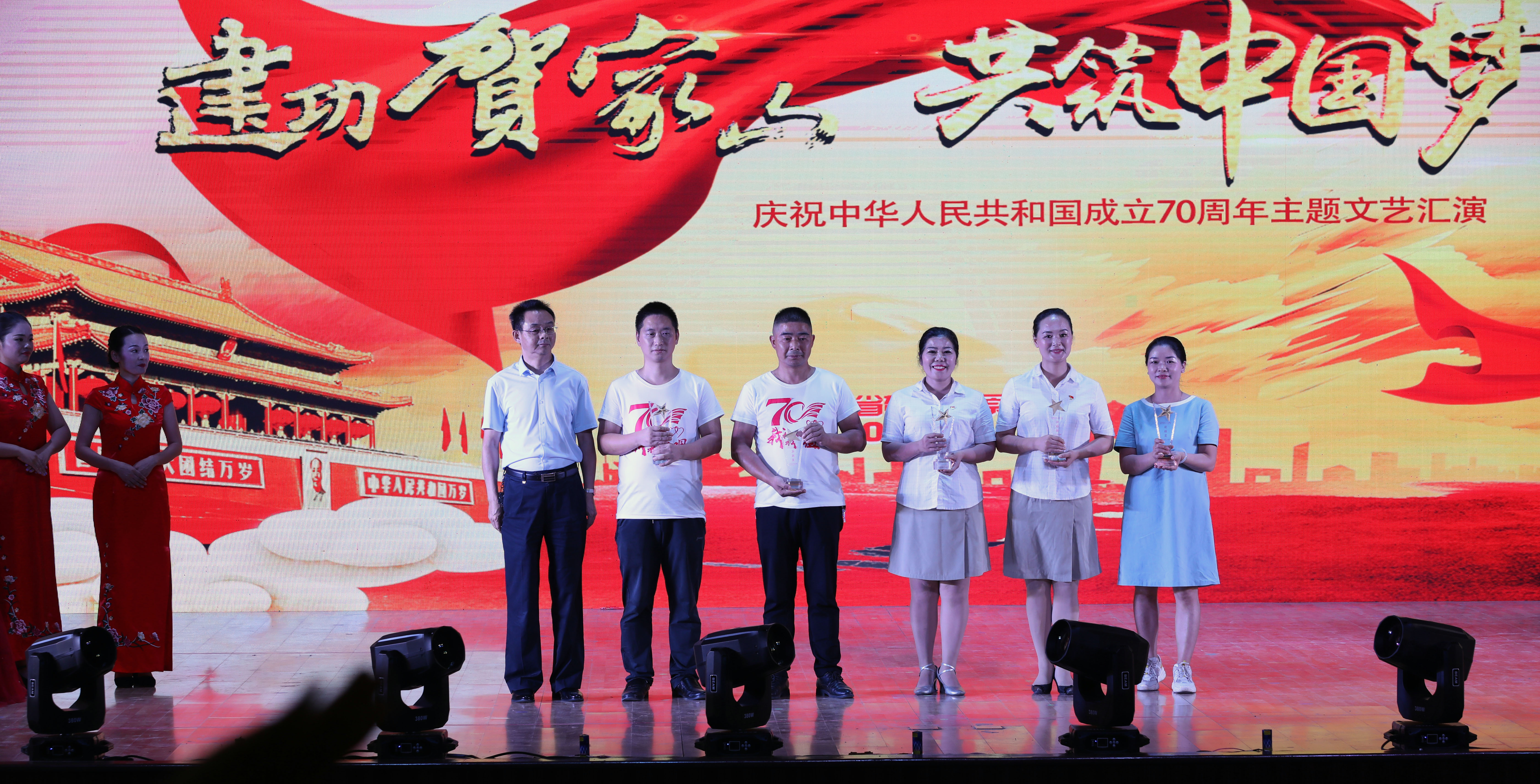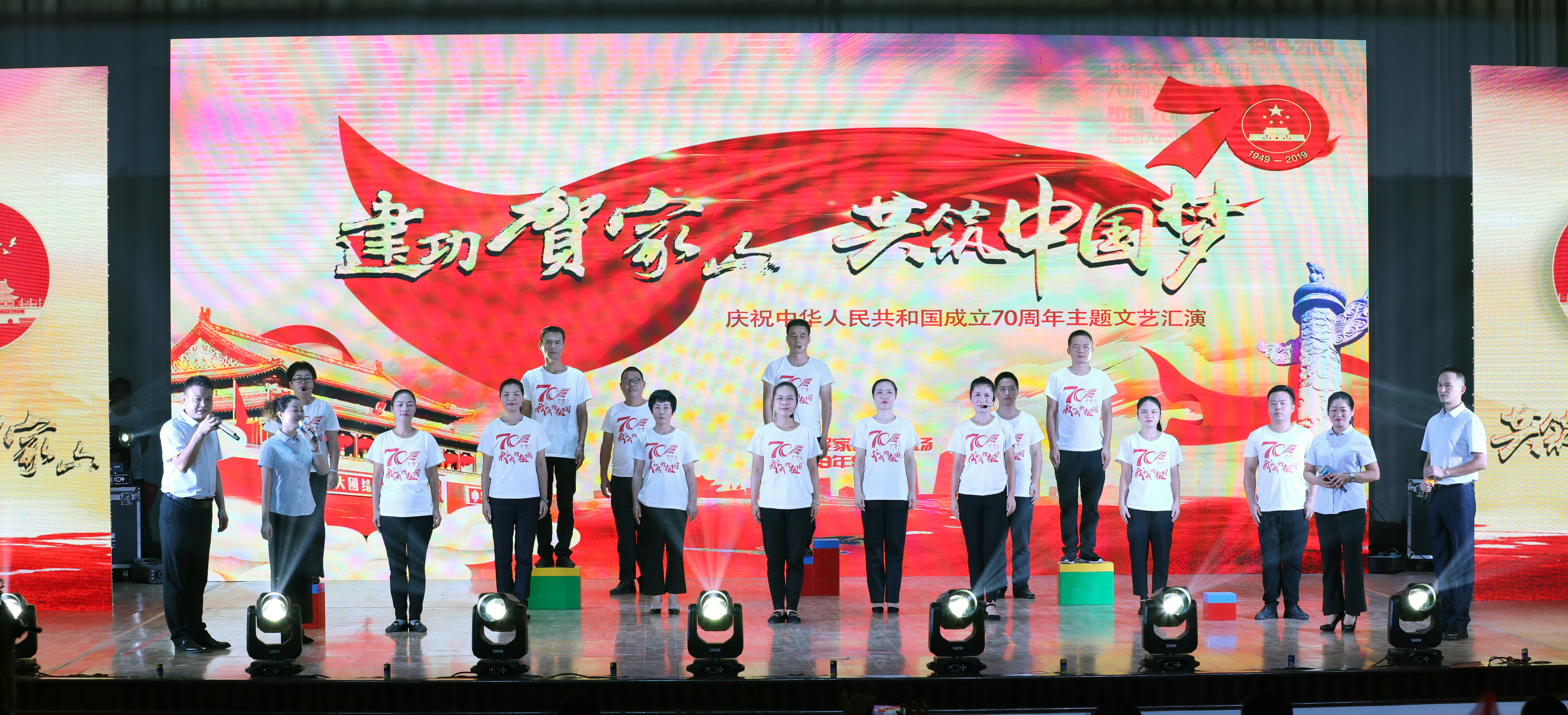 文艺汇演分为“东方破晓”、“中国春潮”和“时代梦想”三个篇章,共有15个表演节目,全部由场属20个党总支(支)部及群团组织选送,演员均为我场干部职工群众。文艺汇演用舞蹈、合唱、旗袍秀、情景剧、朗诵、常德丝弦、相声等多种表演形式,充分展现了在中国共产党的领导下,全国各族人民艰苦奋斗、锐意进取,实现了站起来、富起来到强起来的伟大历程,国家日益繁荣昌盛,人民日益幸福安康。全体在家的场领导、场机关全体工作人员、场属各单位负责人、职工群众代表共70人现场唱响《我和我的祖国》,向伟大祖国70华诞献礼,将对祖国的爱大声唱出来,把晚会推向了高潮。