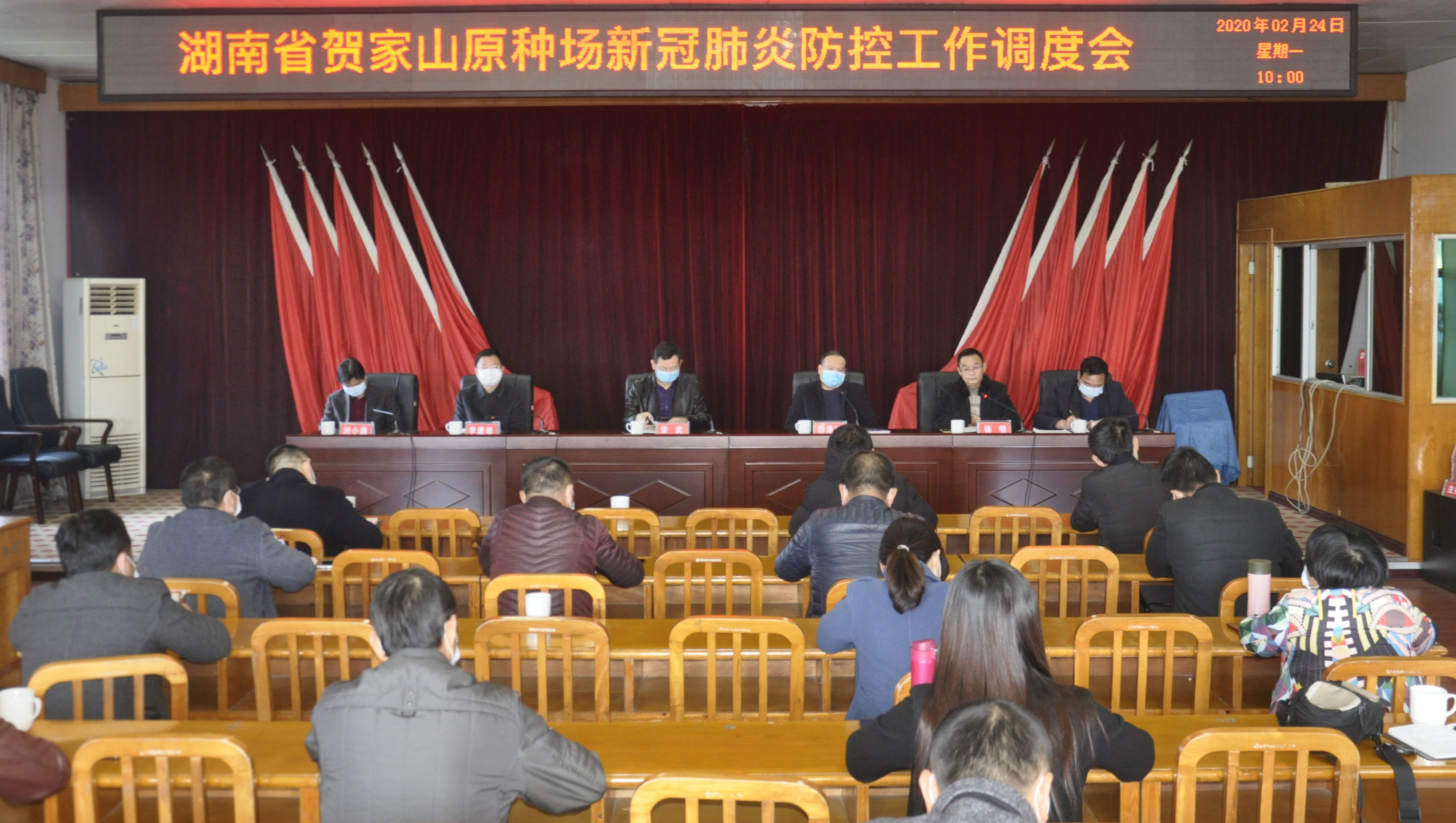 2020年2月24日,省贺家山原种场党委在培训楼召开新冠肺炎防控工作调度会,部署新阶段全场防疫工作。全体党委委员、科室和单位主要负责人参会,会议由场党委副书记、副场长邵泽毅主持。