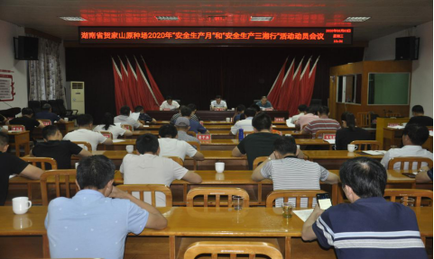 会上,观看了在湘潭市举办的湖南省2020年“安全生产月”“安全生产三湘行”活动启动仪式回放视频;场党委委员、场长助理、办公室主任谭旭生宣读了《湖南省贺家山原种场2020年“安全生产月”和“安全生产三湘行”活动实施方案》,对全场2020年安全生产工作进行了安排部署。
