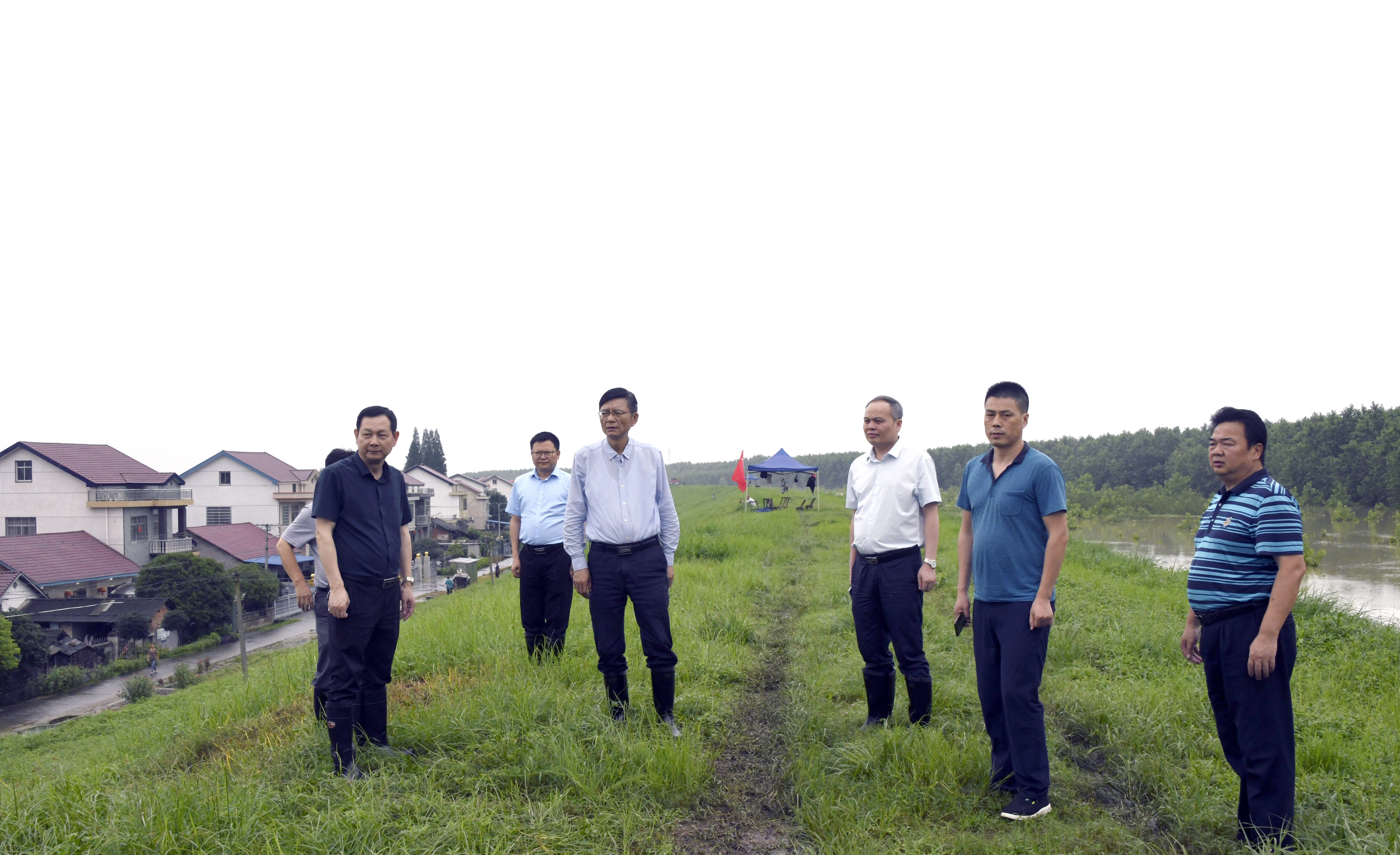 刘益平一行在场培训楼会议室听取了省贺家山原种场党委书记、场长宋武的工作情况报告,并到沅水大堤一线检查了贺家山防汛工作落实情况。